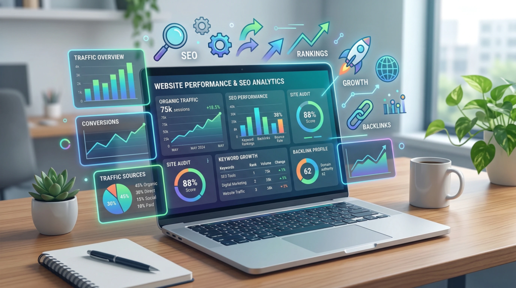 - Technical SEO: Things like website speed, structure, and mobile performance so search engines can crawl your site smoothly.